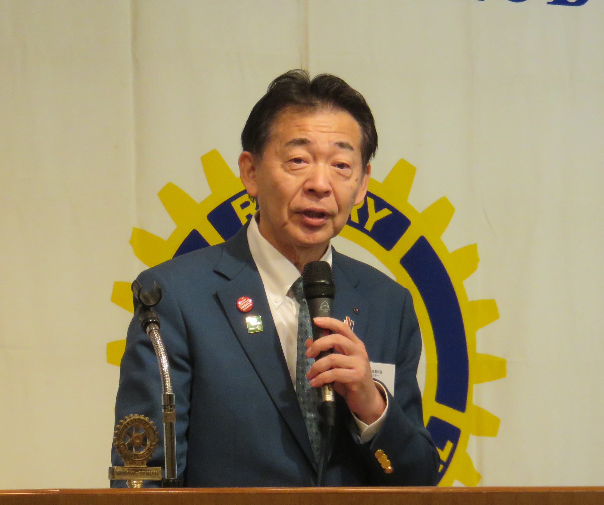 本日は、鈴木康仁ガバナー、小池孝弘地区幹事をお迎えし、そして親クラブである名古屋みなとロータリークラブの皆様とご一緒に、このガバナー公式訪問例会を開催できますことを大変うれしく思います。