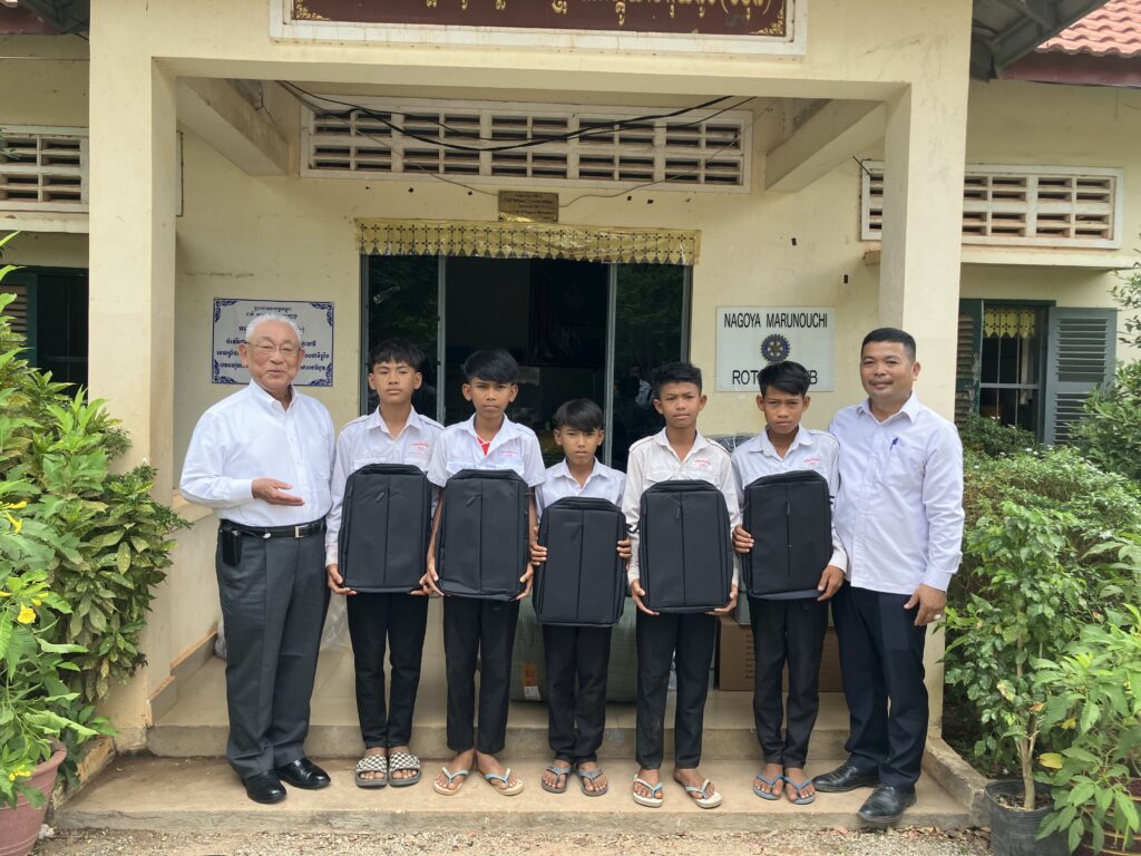 事業内容:小・中学校の児童生徒たちに文具セットとスクールバックを寄贈。